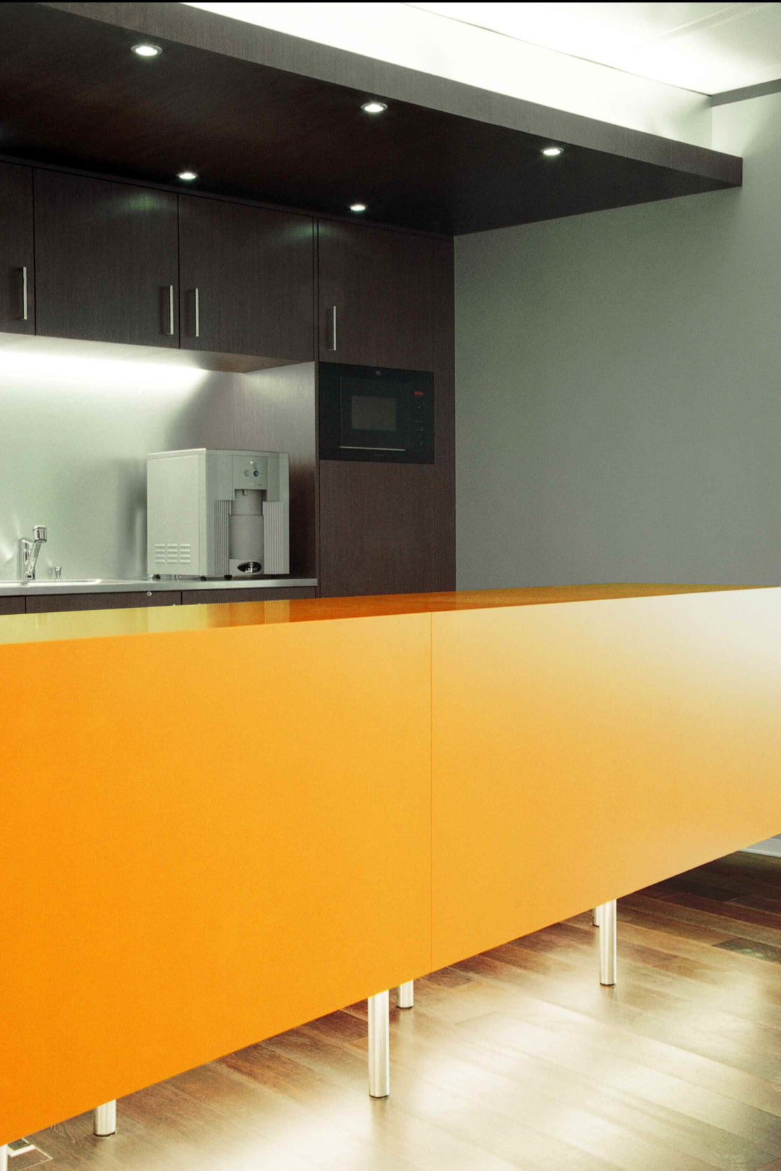 Dans le cadre de ce projet, nous avons été amené à créer un espace de travail dans un contexte existant. Pour répondre à la particularité des activités de Prisminvest, nous avons disposé toutes les salles de conférences et les espaces de réceptions au cœur du bâtiment nous poussant à trouver des solutions inédites pour l’apport de lumière naturelle.